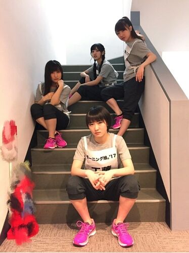 何故か”くどぅーとその子分たち”みたいに なってしまった娘。10期の集合ショット。 でも何となく納得できて それでも良いような感じも・・・笑